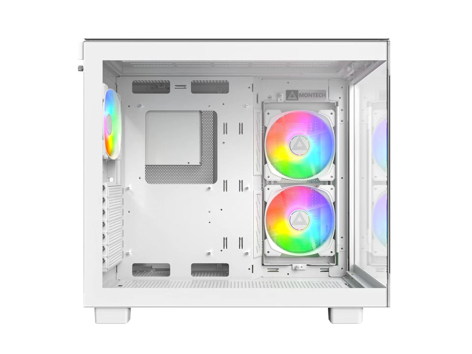 Introducing the MONTECH KING 65 PRO, the mid-tower chassis that redefines clean builds. Featuring a premium Dual-Chamber design, this case separates the power supply and cables from your core components, creating a showcase-worthy interior with unparalleled airflow. With dual tempered glass panels and an optimized mesh design, the KING 65 PRO is built for enthusiasts and gamers who demand the best in both style and thermal performance.