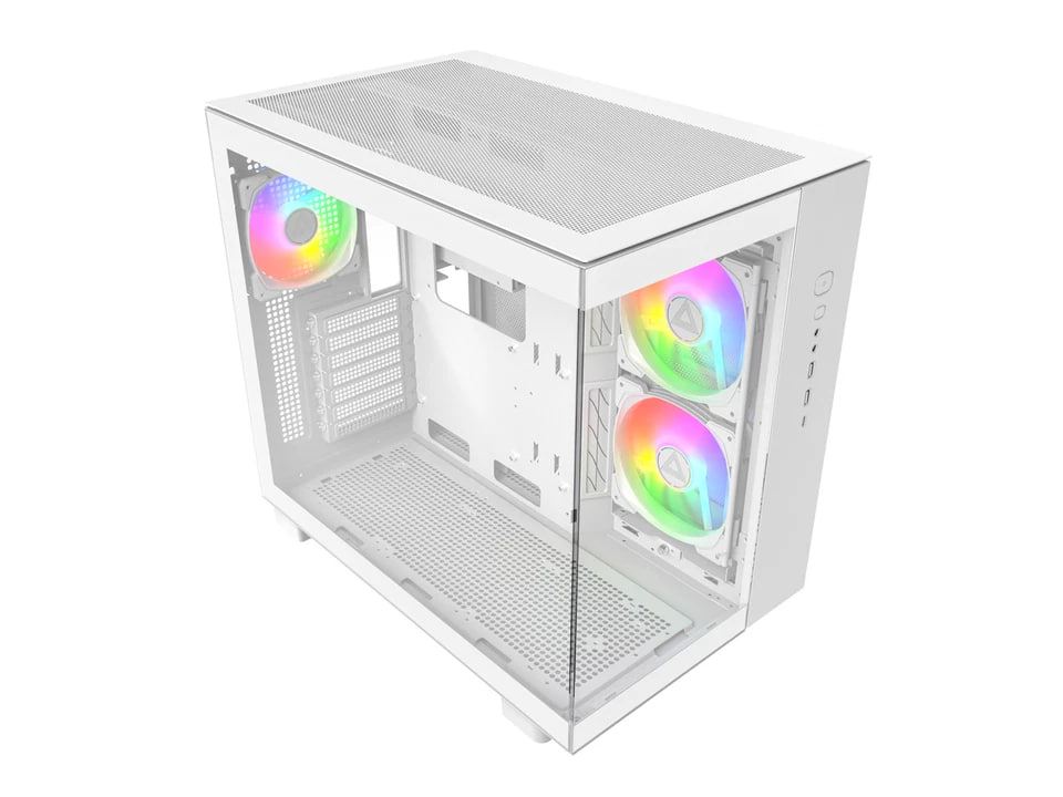 - 3 Pre-Installed ARGB PWM Fans: Comes equipped with two Reversed ARGB PWM Fans (side) and one ARGB PWM Fan (rear) for optimized out-of-the-box cooling and stunning, customizable lighting.